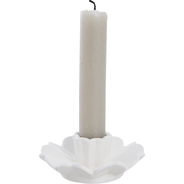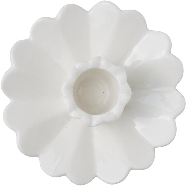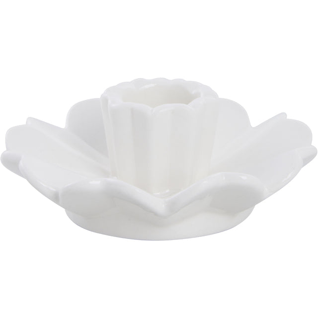 Kaunis keraamiline küünlajalg, mille õrna lillekuju kaunistab kaunis sooneline muster, lisades sellele peenet ja stiilset ilmet. Tugev alus tagab stabiilsuse ning väike hoidik sobib standardsuuruses küünla jaoks, luues kodus hubase ja sooja õhkkonna.
