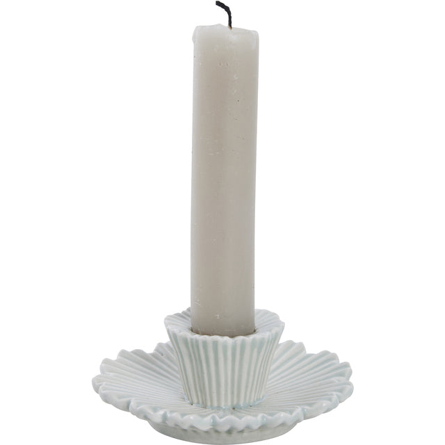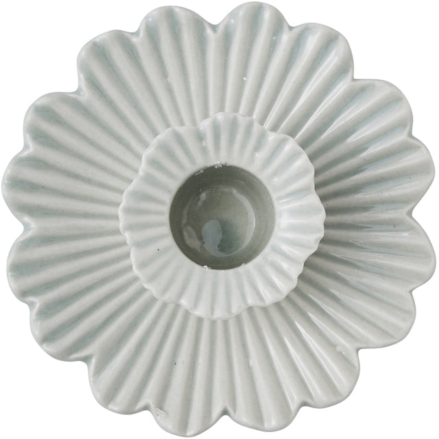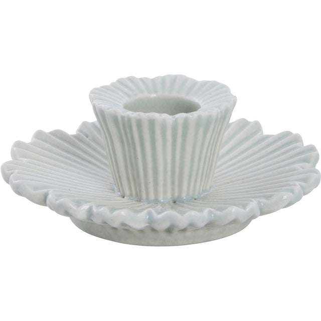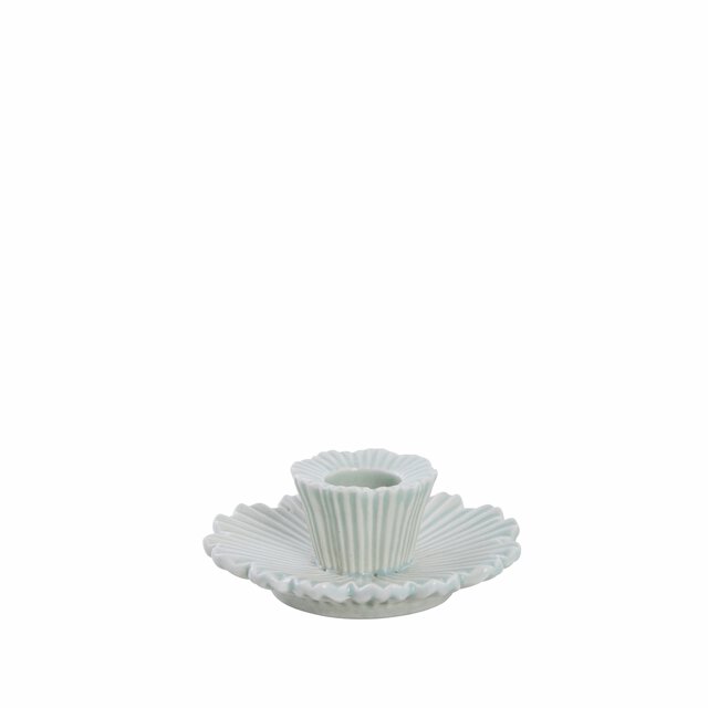 Kaunis keraamiline küünlajalg, mille õrna lillekuju kaunistab kaunis sooneline muster, lisades sellele peenet ja stiilset ilmet. Tugev alus tagab stabiilsuse ning väike hoidik sobib standardsuuruses küünla jaoks, luues kodus hubase ja sooja õhkkonna.